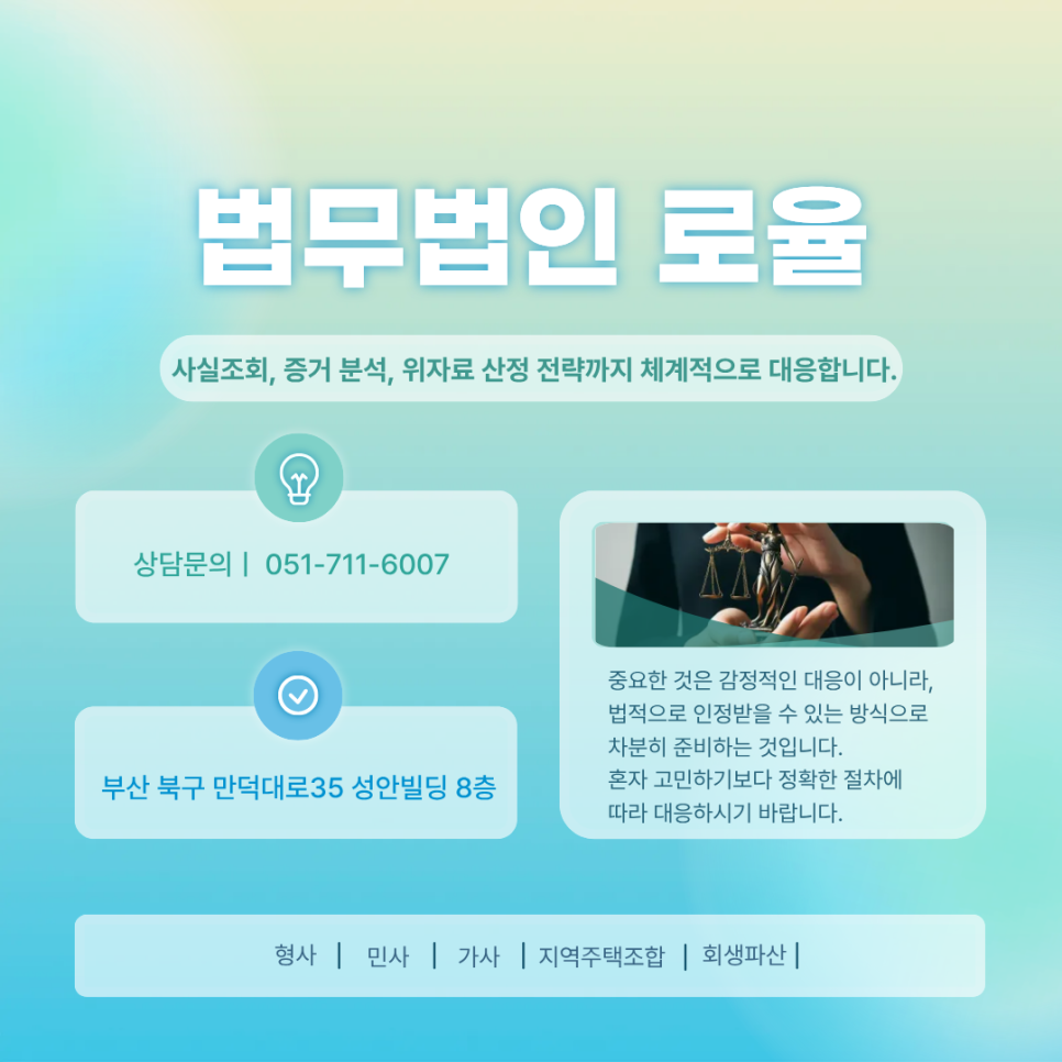 중요한 것은 감정적인 대응이 아니라, 법적으로 인정받을 수 있는 방식으로 차분히 준비하는 것입니다.