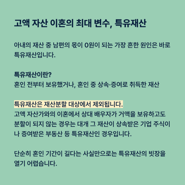 고액 자산 이혼의 최대 변수, 특유재산
