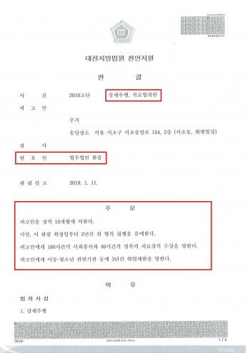피고인에게 180시간의 사회봉사 및 40시간의 성폭력 치료강의 수강을 명한다.