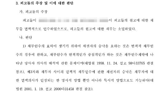 이 소송의 핵심은 법적으로 '면책적 채무인수'가 성립했는지 여부였습니다.