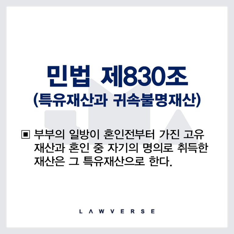특유재산이란 부부 중 한쪽이 결혼 전부터 가지고 있었거나, 결혼 생활 중이라도 상속·증여 등을 통해 단독으로 취득한 재산을 말합니다.
