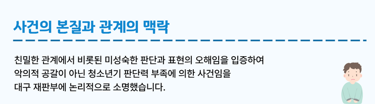 대구 지역 청소년 사건에서는 이처럼 관계의 왜곡이 갈등의 출발점이 되는 경우가 적지 않습니다.
