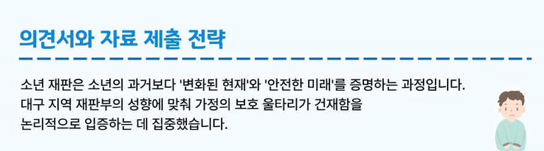 대구 지역 소년 사건에서는 태도의 진정성과 환경 개선 노력이 중요한 판단 요소가 됩니다.