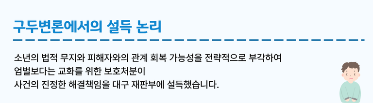 대구소년재판변호사로서 처벌보다 보호가 타당하다는 논리를 전개했습니다.