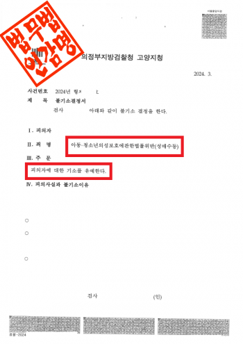 의정부지방검찰청 고양지청은 이 사건에 대해 다음과 같은 사유로 불기소 결정을 하였습니다.
