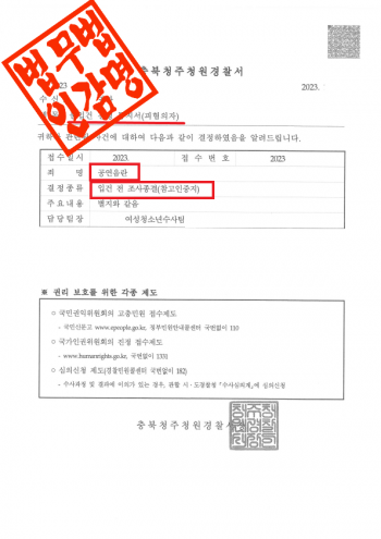 충북청주청원경찰서는 이 사건에 대해 다음과 같은 사유로 입건전 조사종결(피혐의자중지)을 하였습니다.