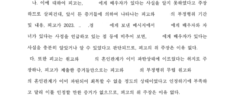 배우자와 상간자의 대화 내용은 수 년에 걸쳐 서로 안부를 묻고, 애정이 담긴 말을 주고받은 내용에 해당할 뿐만 아니라 심지어 성관계를 암시하는 내용도 포함되어 있었습니다.