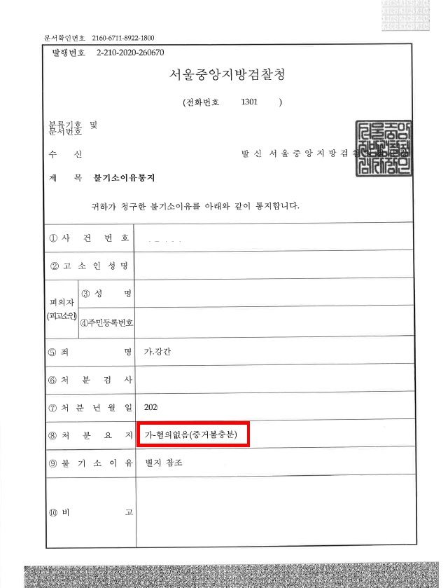 문제는 추후 여자친구가 이의신청을 하였다는 것인데, 이마저도 검찰에서 이유없다고 결정을 내리면서 의뢰인은 사회로 무사히 복귀할 수 있었습니다.