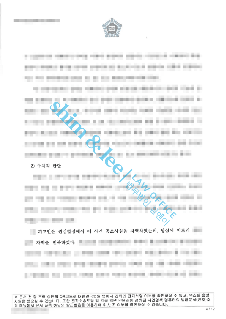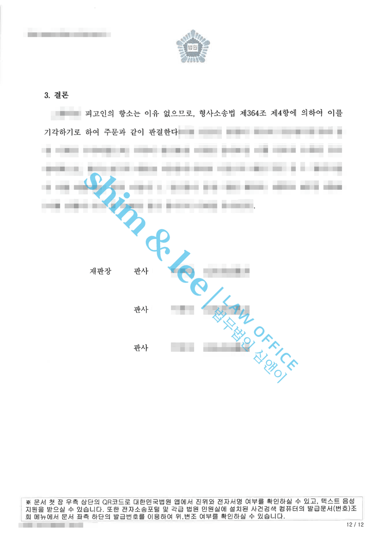 - 심앤이가 의견서를 통해 가해자의 주장에 대해 논리적으로 반박해 대응한 결과, 2심(항소심) 재판부는 피고인의 항소를 기각하고 1심 판결을 그대로 유지했습니다.