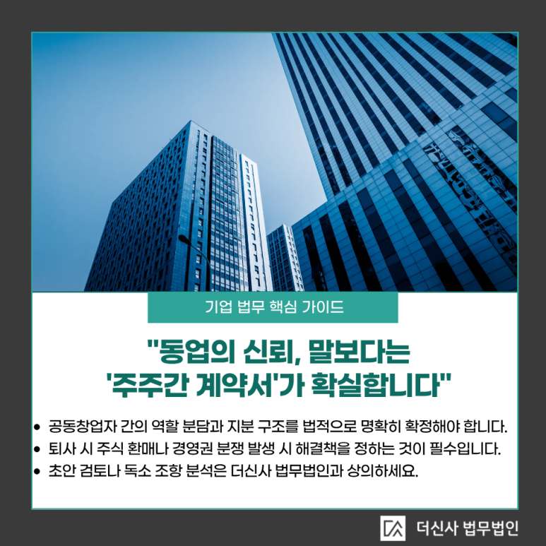 돈과 권한이 얽히면 이야기는 달라집니다. 주주간 계약서는