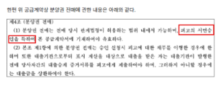 계약서에 일반적으로 분양사측의 서면승인ㅇ늘 얻으라고는 하나,