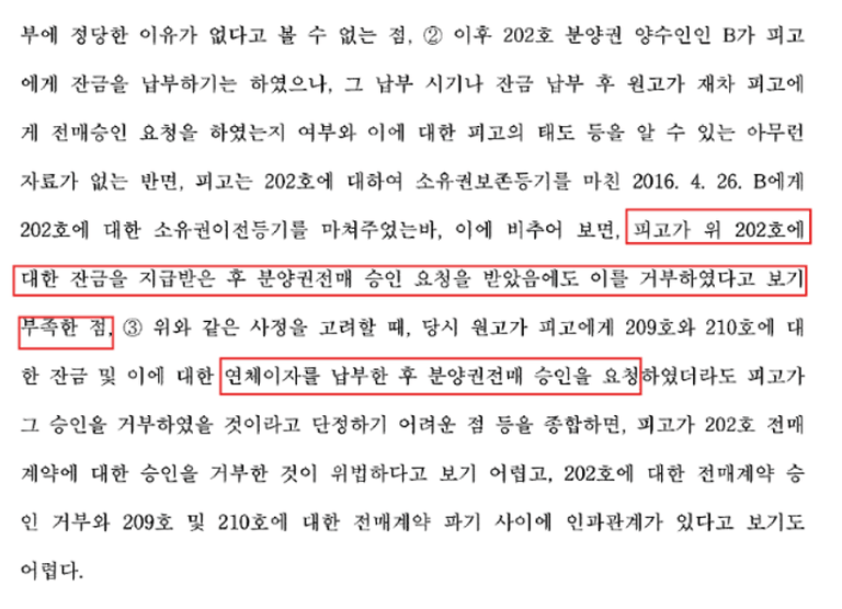분양사가 전매승인을 "정당하게" 거부한 경우도 있어요.