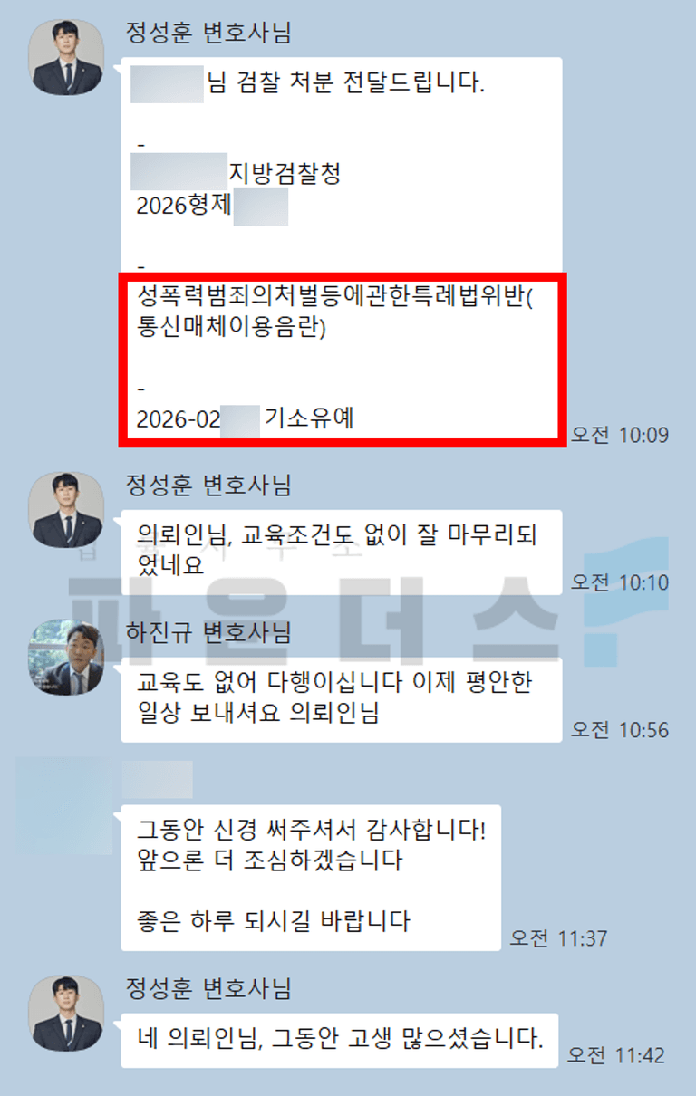 그 결과 의뢰인은 성기 윤곽이 드러난 사진을 전송한 통매음 사건에서 기소유예 처분으로 마무리될 수 있었습니다.