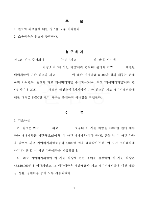 원고는 의뢰인과 이 사건 자동차 매매계약을 체결하였는데 갑자기 이 사건 계약은 무권대리인이 체결한 것이어서 무효라며 이 사건 채무부존재확인의 소를 제기하여 의뢰인은 저를 찾아오셨습니다.