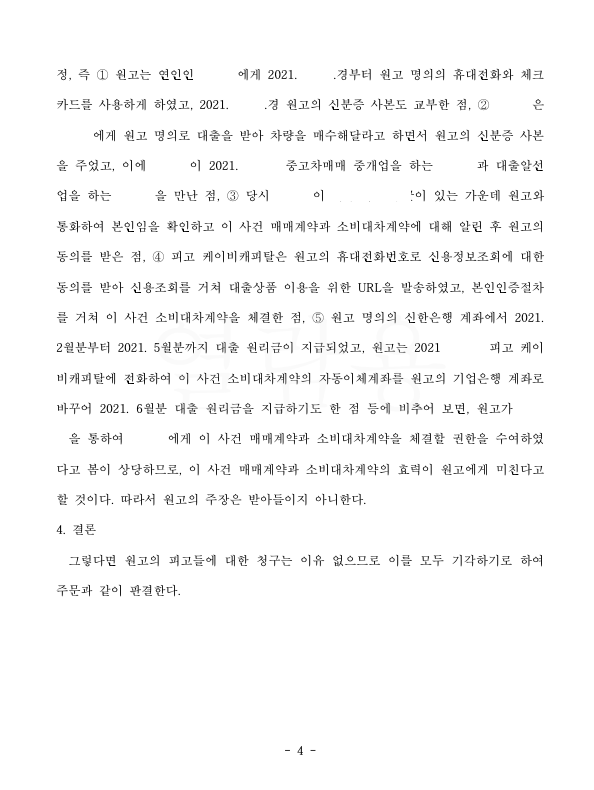 저는 즉각 응소하여 이 사건 계약의 경위, 원고가 신분증 등을 대리인에게 교부한 점, 이 사건 계약 체결 당시 원고에게 계약 체결 사실을 통지한 점 등을 주장 입증하였고 이에 법원은 원고 청구를 기각하였습니다.