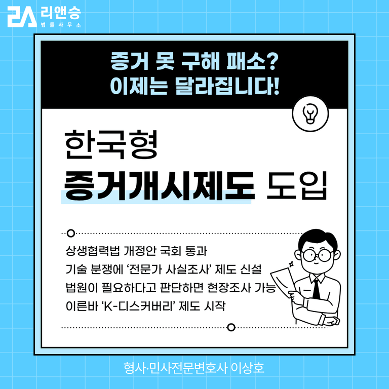 이른바 ‘한국형 증거개시제도(K-디스커버리)’가 도입되었습니다.