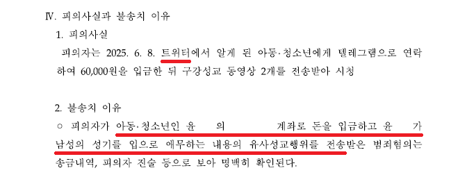 A씨는 2025. 6. 8.경 트위터에서 '윤○'라는 여성이 자신의 영상을 판매한다는 글을 게시한 것을 보고, '윤○'에게 연락하여 구매의사를 밝힌 다음, '윤○'가 알려주는 계좌로 60,000원을 이체하고 '윤○'로부터 구강성교 동영상 2개를 전송받았습니다.