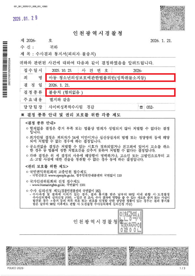 ⑥ 경찰 조사를 받은 후 "A씨는 '윤○'가 미성년자라는 사실을 전혀 알 수 없었다."라는 내용의 변호인의견서를 작성하여 제출하였습니다.