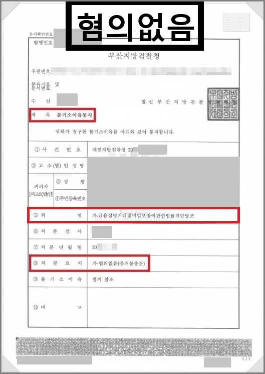 3️⃣ 결과 : '혐의없음' 불기소 결정