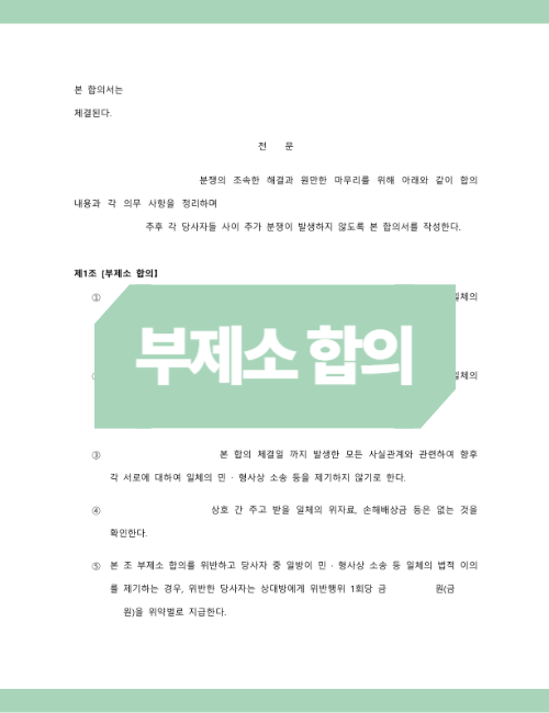 특정한 사안에 대하여 향후 민·형사상의 소송을 제기하지 않기로 약속하는 합의입니다.