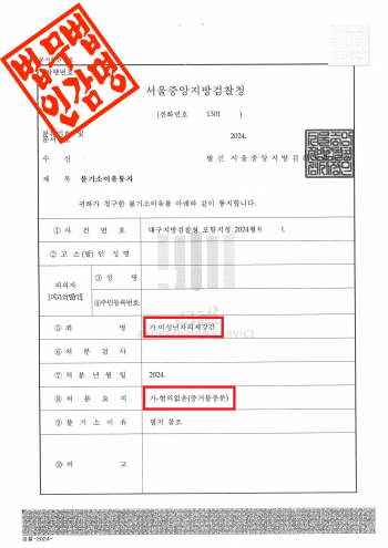 대구지방검찰청 포항지청은 이 사건에 대해 다음과 같은 사유로 불기소 결정을 하였습니다.