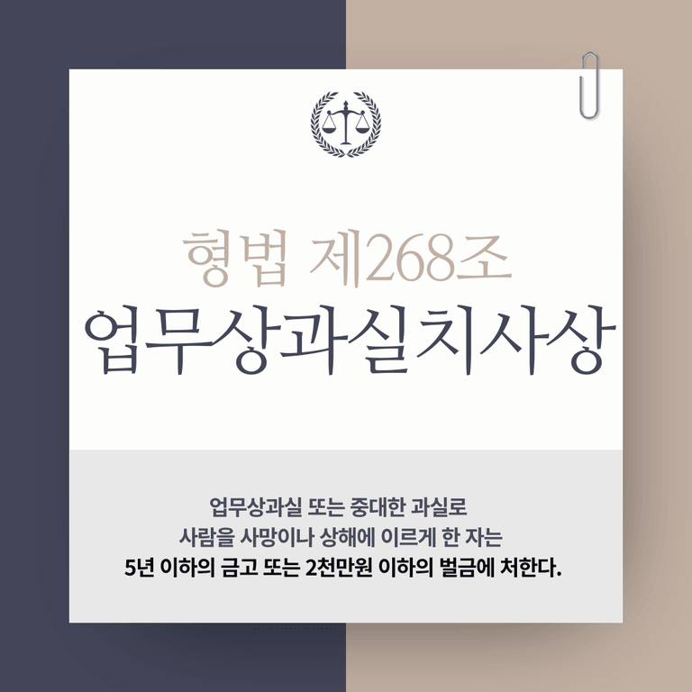 업무상과실 또는 중대한 과실로 사람을 사망이나 상해에 이르게 한 자는 5년 이하의 금고 또는 2천만원 이하의 벌금에 처한다.