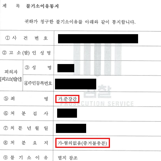 그 결과, 검사는 본 변호사의 주장을 받아들여, 고소인의 진술만으로는 의뢰인의 혐의를 인정하기에 증거가 부족하다고 판단하여 ‘혐의없음(증거불충분)’ 처분을 내렸습니다. 이로써 의뢰인은 억울한 준강간 혐의에서 벗어나 일상으로 복귀할 수 있었습니다.