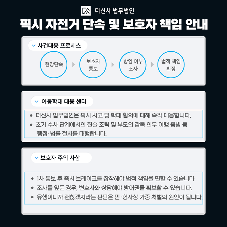 “다른 애들도 다 타는데 왜 우리 애만 가지고 그러냐”는 항변은 사고 현장에서도, 법정에서도 자녀를 지켜주지 못합니다. 브레이크를 떼는 것이 아이들 사이에서 '멋'으로 통용될지 모르나, 법과 물리 법칙은 그 '멋'을 배려하지 않습니다.