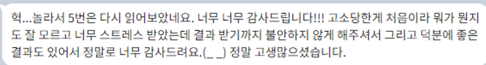 의뢰인분의 감사인사. 마음고생 많으셨는데 평안한 일상으로 돌아가시길 바랍니다.