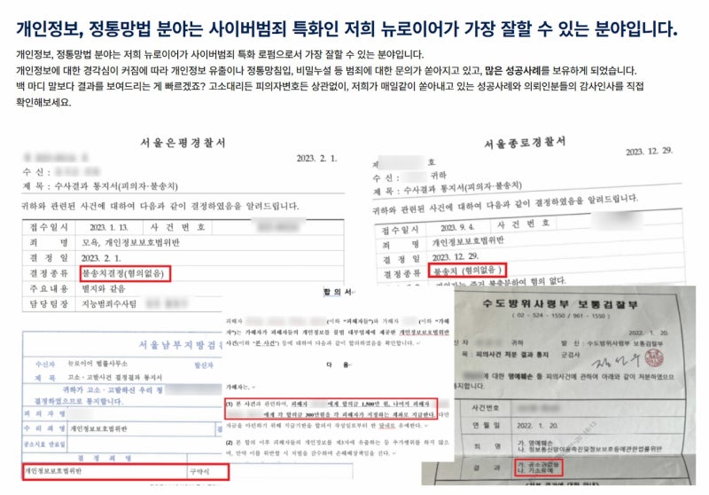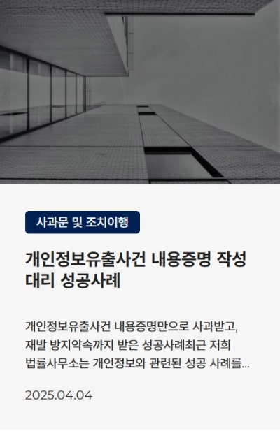 이는 저희가 실제로 개인정보보호법위반 사건에서 다수의 성공 사례를 보유하고 있기에 자신 있게 말씀드리는 것이니 믿어주셔도 좋습니다.