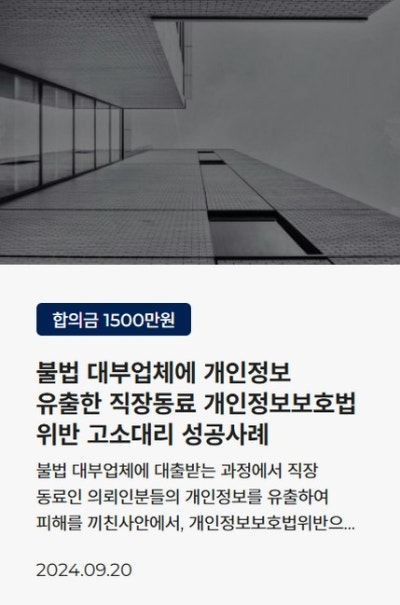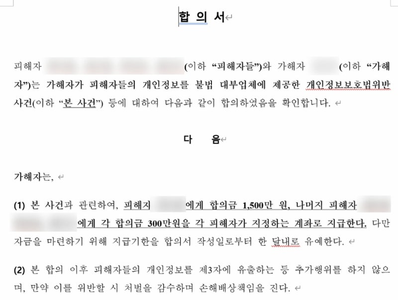 마지막으로, 저희가 실제로 직장내 개인정보유출 사건에서 의뢰인이 원하시는 합의금을 받아낸 사례를 남겨드리겠으니 조금만 더 집중하시기 바랍니다.