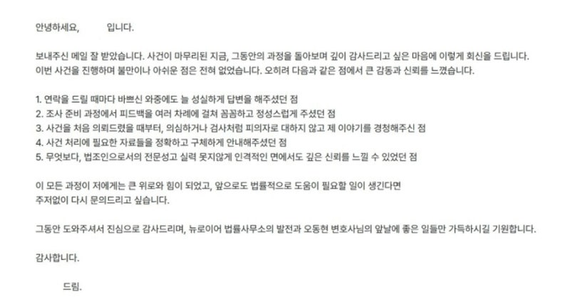 실제로 의뢰인께서 남겨주셨던 감사의 글입니다.