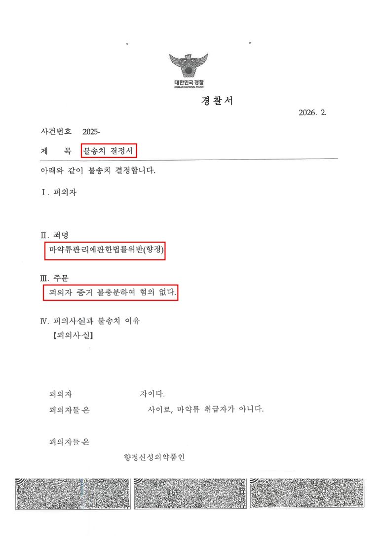 수사기관은 변호인의 주장을 받아들여 무혐의 처분을 내렸습니다.