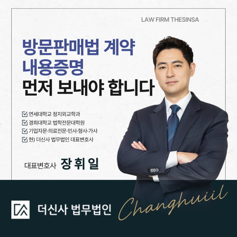 방문판매법에 해당된다면 더신사 법무법인의 전문적인 식견이 담긴 내용증명을 보내는 것이 실질적인 해결책이 됩니다.