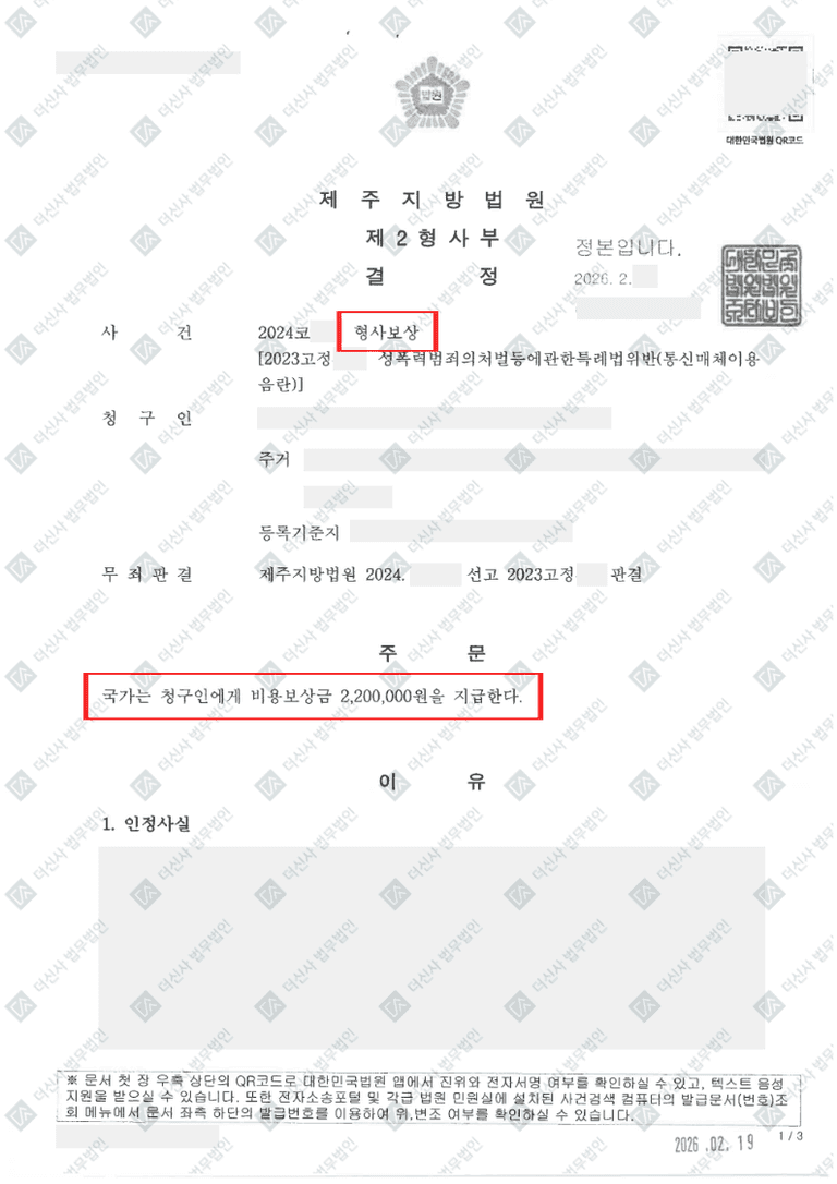 3. 결과: 무혐의 처분 및 형사보상금 확정