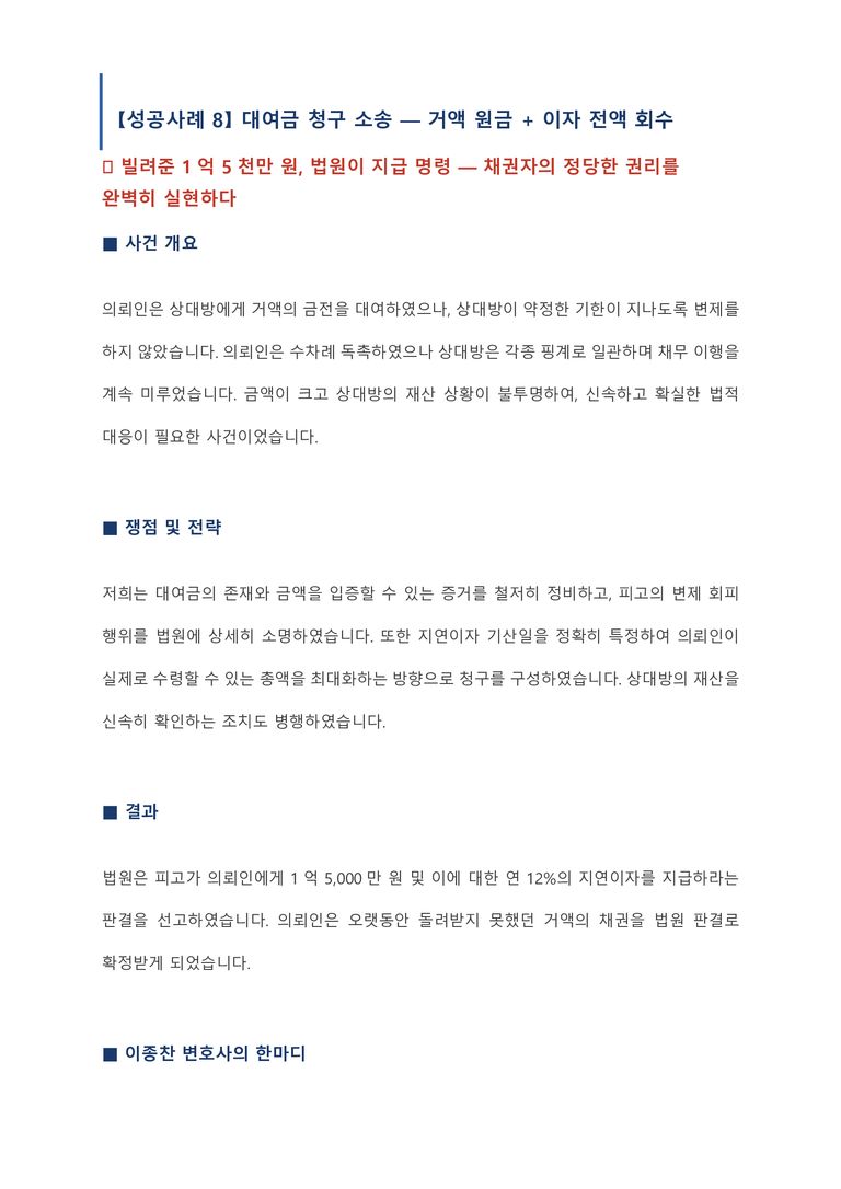 거액원금 및 이자 전액 회수 - 대여금 청구 소송