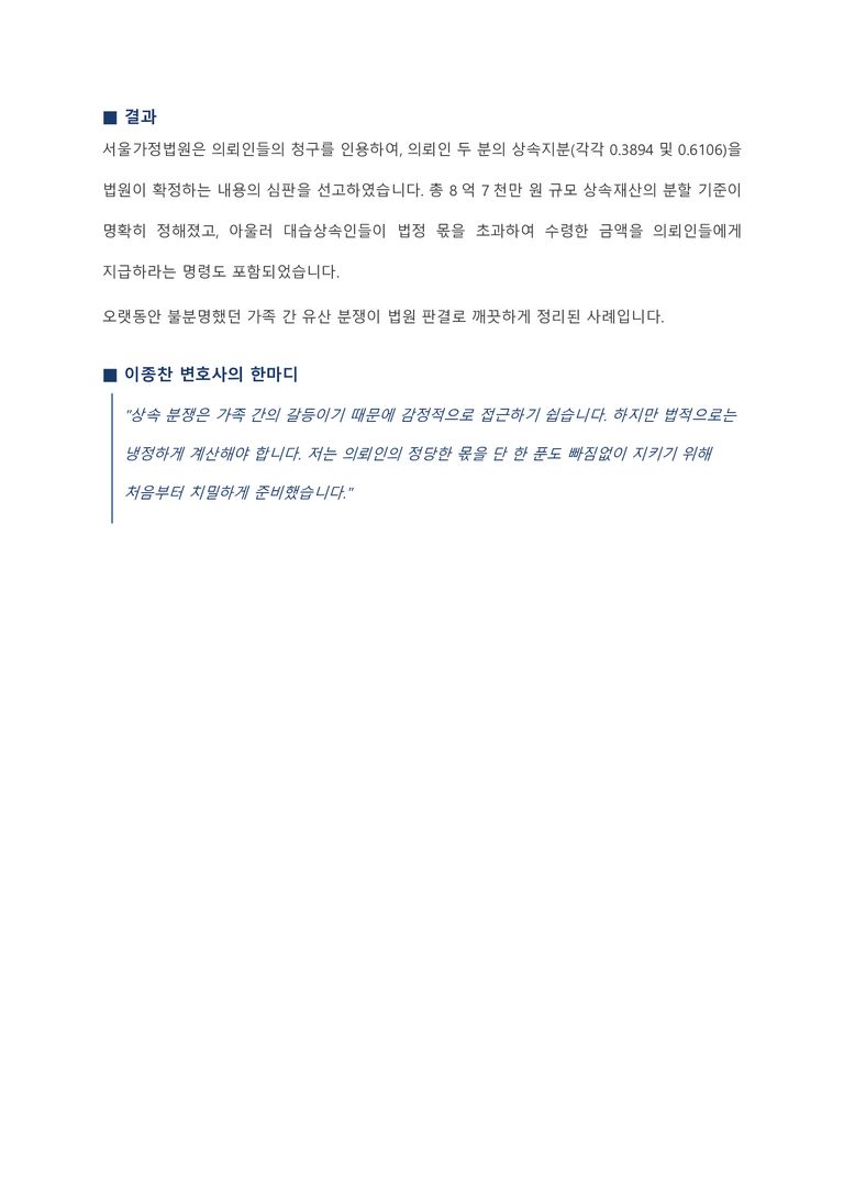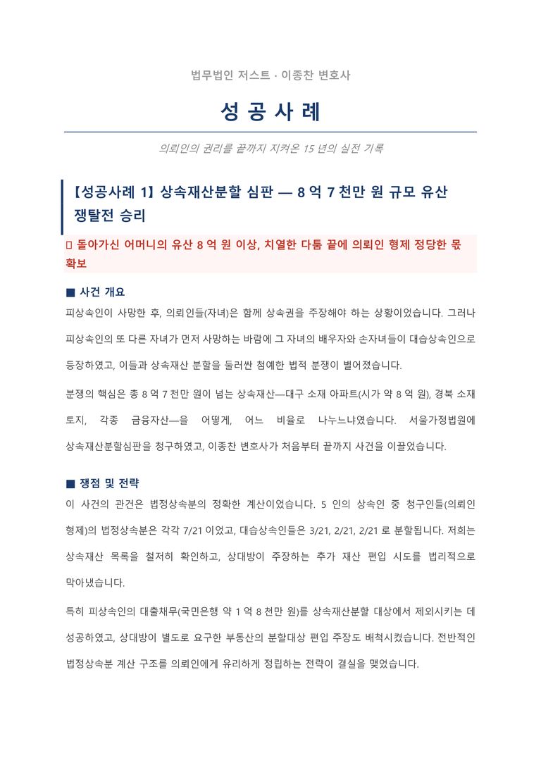 유산 8억원 이상, 정당한 몫 확보 - 상속재산분할심판