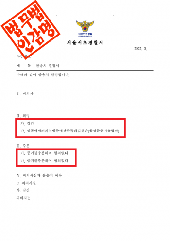 서울서초경찰서는 이 사건에 대해 다음과 같은 사유로 불송치 결정을 하였습니다.
