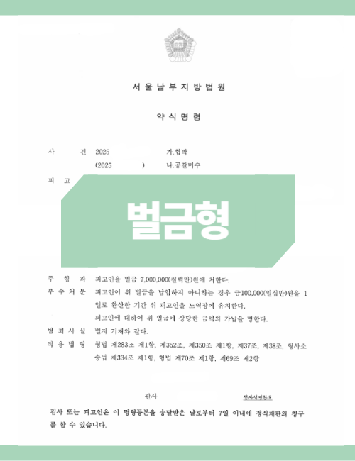 [성공 사례] 위약벌 합의서를 빌미로 한 7,400만 원 갈취 미수 사건
