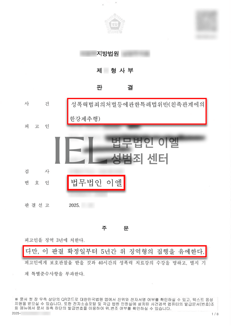 친족관계 성범죄 사건일수록 초동 대응과 전략 설계의 중요성은 더욱 커지며, 법무법인 이엘 성범죄 센터는 이러한 사례를 통해 그 차이를 분명히 보여주고 있습니다.