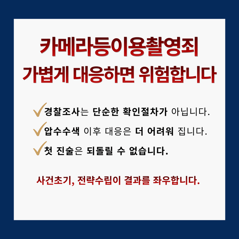 카메라등이용촬영죄는 단순한 촬영 문제가 아니라 성범죄로 분류되는 중대한 형사사건입니다.