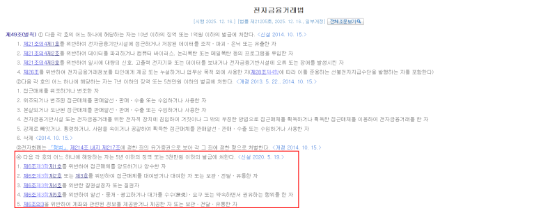 1. 전자금융거래법위반 처벌 수위는 어떻게 되나요?