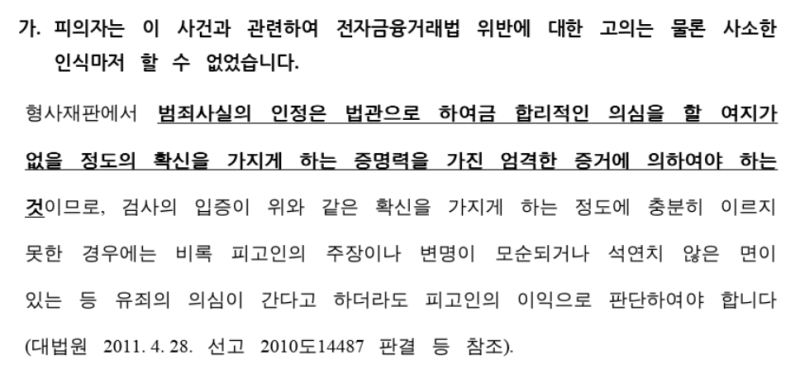 변호인 의견서 내용 중 일부입니다.