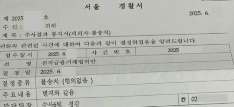 ▼ 마지막으로 저희가 실제로 이 전략을 이용해서 전금법위반 사건에서 불송치 결정 이끌어낸 사례를 남겨드리겠으니 조금만 집중하시기 바랍니다.