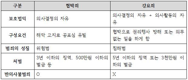 강요죄는 협박으로 사람을 움직이게 만들 때 성립합니다