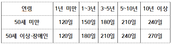 지급기간은 이직 당시 연령피보험기간에 따라 차등 적용됩니다.