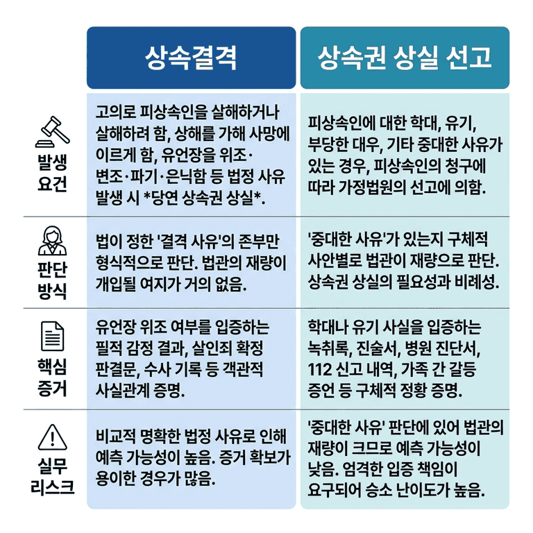 3) 상속결격 vs 상속권 상실 선고, 무엇이 다른가