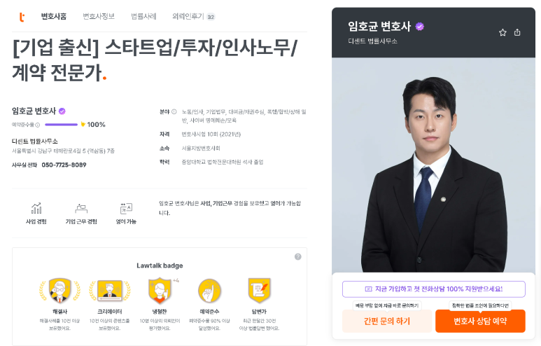 그리고 크몽에서 예방변호사로 활동하며 400건에 달하는 계약서 검토 서비스를 제공해 왔습니다.