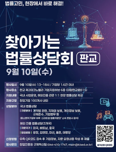 2025년 9월 10일 판교, 찾아가는 법률상담회에 참여합니다.