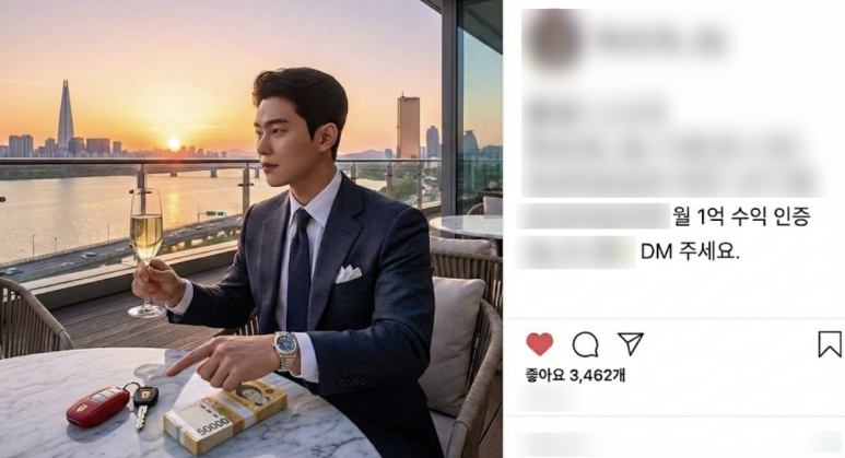 유튜브나 SNS에서 고급 라이프스타일을 과시하며 "나처럼 될 수 있다"고 유혹합니다.